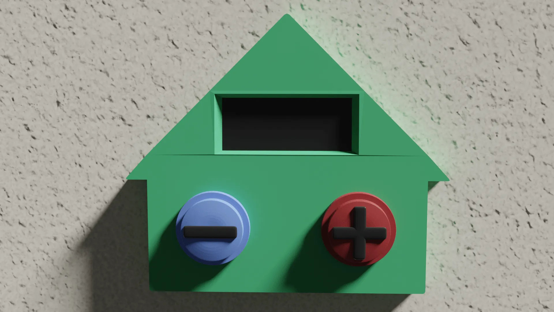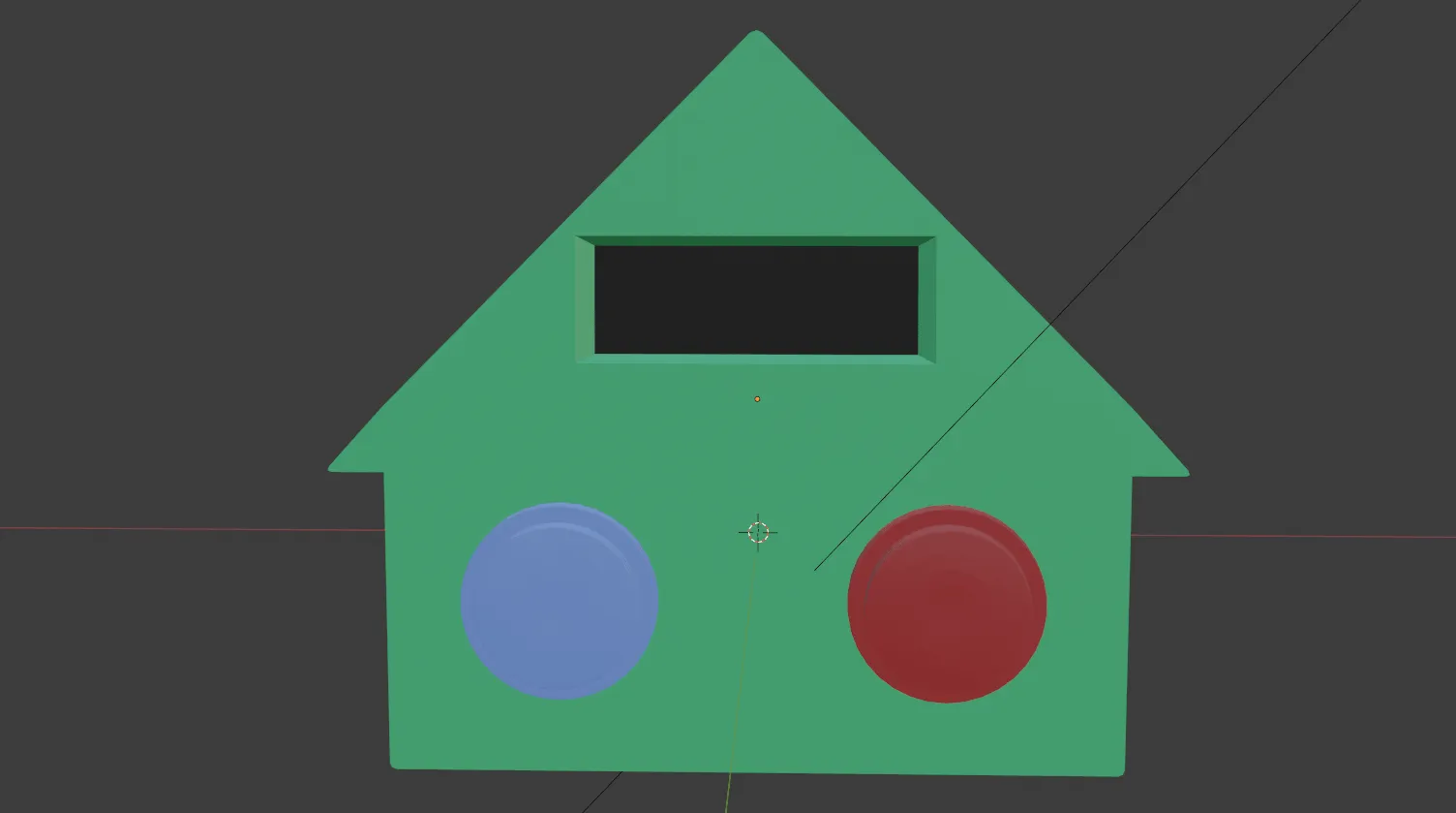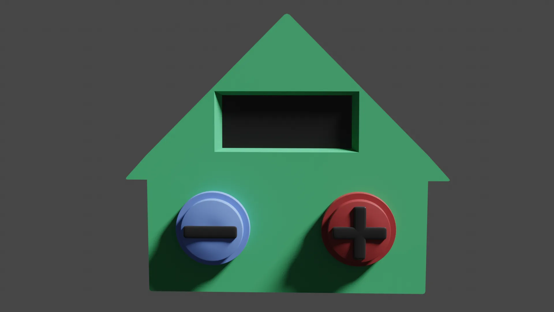 I obviously could not leave the house looking like boring white plastic. I navigated to the material editor and chose to give the house a light green colour. I chose green as it is a gender neutral colour. It is neither red nor blue which would represent hot or cold and could clash with the buttons. I avoided choosing a colour like purple which could be considered too “modern”. To indicate an LCD I made the screen area black.