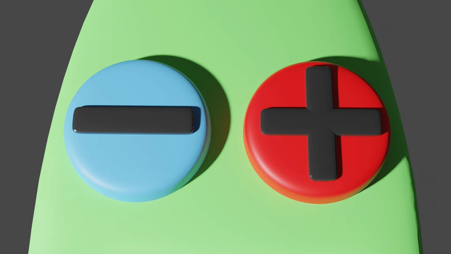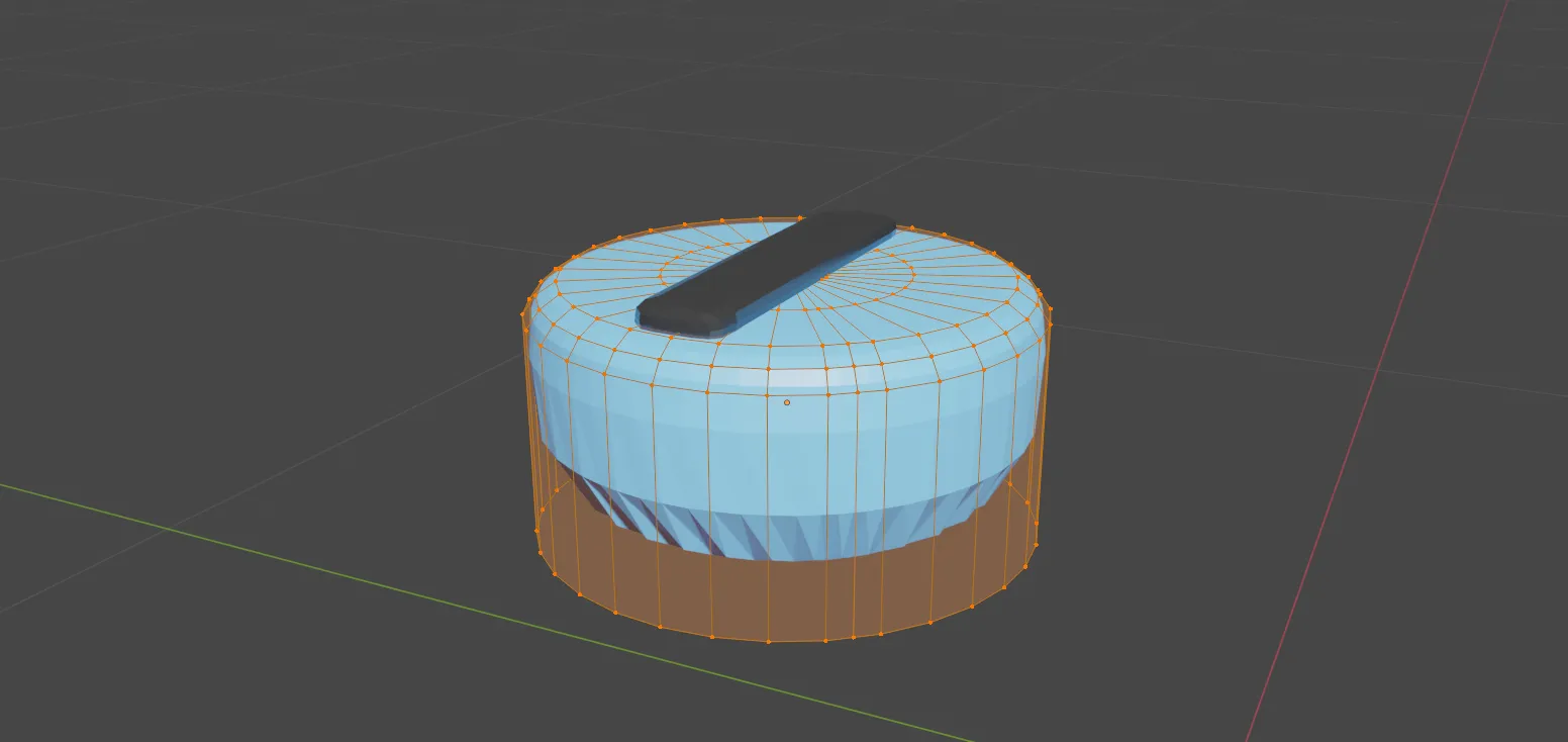 To start making the buttons I added a cylinder, inserted a face and extruded to make the shape. I thought a depression in the centre would make it more interesting. I considered using Braille but decided this could be confusing for the elderly not familiar with this communication method. Instead I added tactile plus and minus shapes to the buttons. The buttons were coloured according to heat and cold, red and blue.