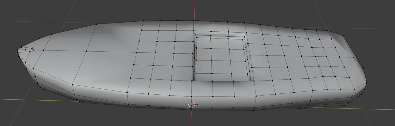 Starting with a UV sphere in edit mode. I turned on x-ray and removed the top half of the sphere. I stretched the half sphere to create an elongated oval-shape. I took inspiration from the Google Chromecast remote. This remote feels very comfortable in the hand, it is well designed ergonomically. Using the knife tool and the loop cut tool, I added geometry along the length of the remote. Rather than selecting the rim and creating one face, I took vertices directly across from each other and created an edge between them. Once I had a grid I was able to select squares in that grid and fill them in. This would allow me later to subdivide the geometry on the face giving me enough space to insert the screen.