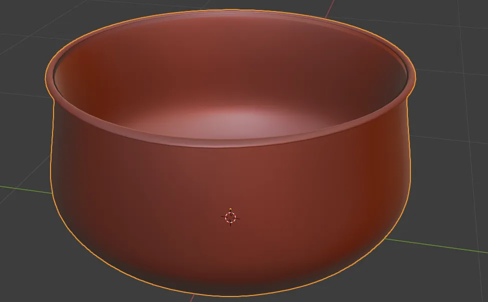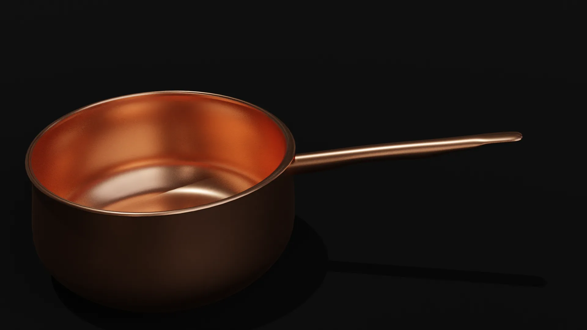 The main body started by slicing the top off a sphere in edit mode. Using proportional editing, I moulded the rest of the geometry to match my physical reference. I extruded a flat base, then using extrusion and rotation, I created the lip of the saucepan. Finally I added the subdivision surface modifier to smooth out the surface.